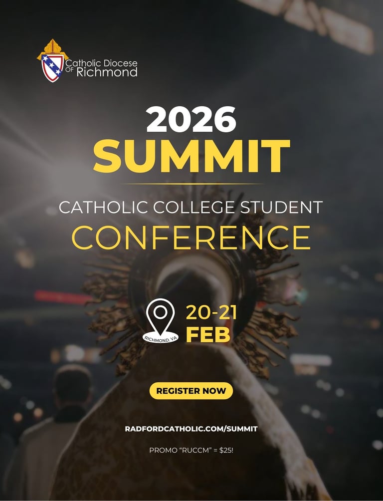 Registration is open for the Diocese of Richmond's annual Summit conference! Catholic college students from around the commonwealth gather for prayer, fellowship, and formation.